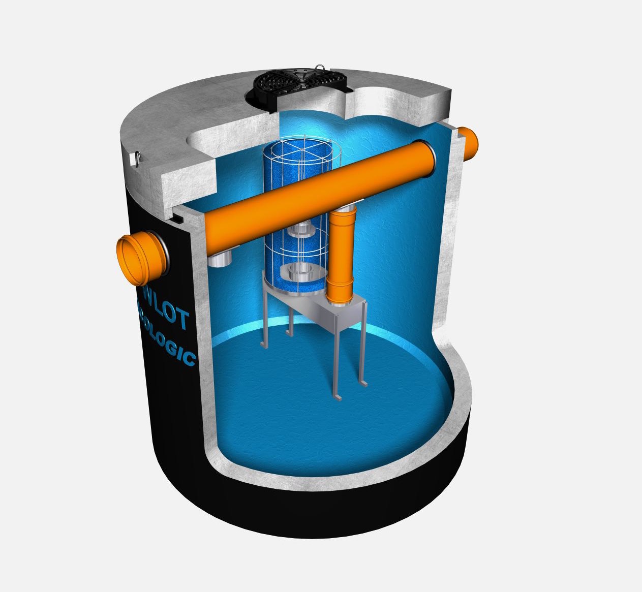 Separatory substancji ropopochodnych z wewnętrznym kanałem odciążającym (by‑‑pass) firmy ECOLOGIC są urządzeniami przepływowymi do zabudowy w gruncie, mogące występować jako urządzenia niezależne typoszereg ECO‑H lub urządzenia zintegrowane z osadnikiem typoszereg ECO‑K. Przeznaczone są do zatrzymywania i oddzielania substancji ropopochodnych, oraz oddzielania zawiesin mineralnych zawartych w ściekach odprowadzanych bezpośrednio do odbiornika. Urządzenia tego typu znajdują zastosowanie przy oczyszczaniu wód opadowych i roztopowych pochodzących z parkingów, dróg ekspresowych i autostrad, lotnisk, dużych zlewni miejskich itp. Zastosowanie zintegrowanego z osadnikiem, kompaktowego typu separatora jest szczególnie uzasadnione w przypadku, kiedy nie ma dostatecznej ilości powierzchni pod zabudowę dużych separatorów z oddzielnymi osadnikami.