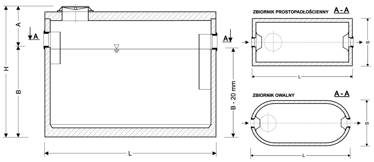 | Zagłębienie dna zbiornika B | [mm] | 2100 | 2250 |
