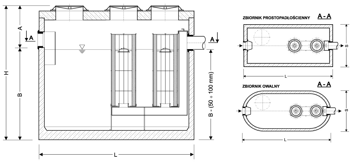 | Zagłębienie dna zbiornika B | [mm] | 1950 | 1950 | 1950 | 1950 | 1850 | 1850 | 1850 | 1850 | 1850 | 1850 |