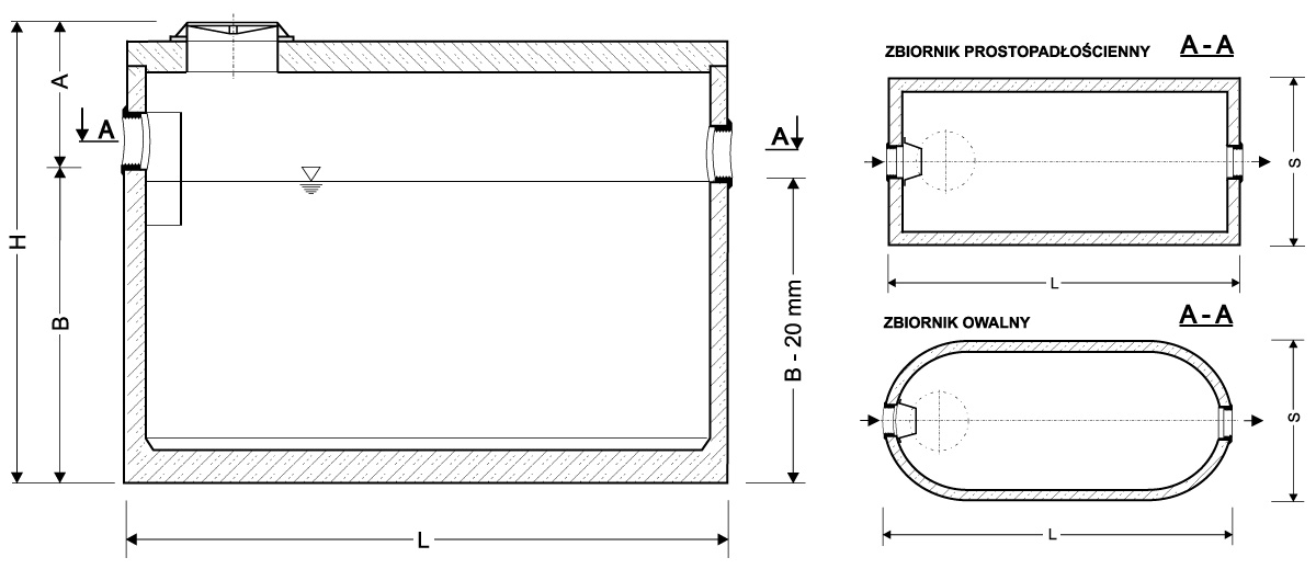 | Zagłębienie dna zbiornika B | [mm] | 2100 | 2100 | 2100 | 2100 | 2000 | 2000 |